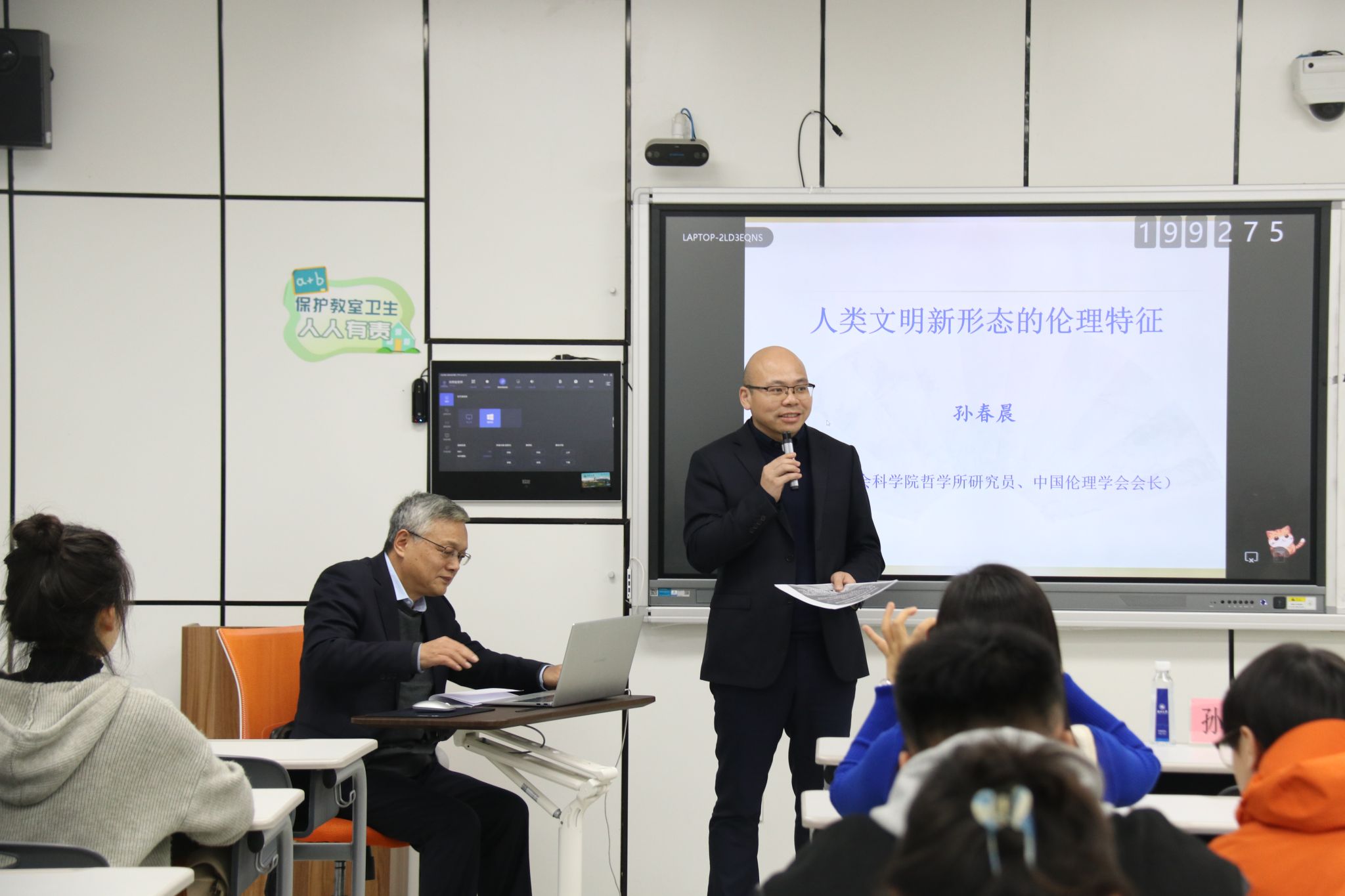 大家在近距离的交流中,对“人类文明新形态”有了更具体、更深入的认识。讲座最后,卓高生院长对此次讲座进行了总结。他认为,孙春晨教授从伦理学角度对“人类文明新形态”这一话题的学理化阐释、理论化思考,系统而深刻,对学院师生今后的相关研究很有借鉴意义。