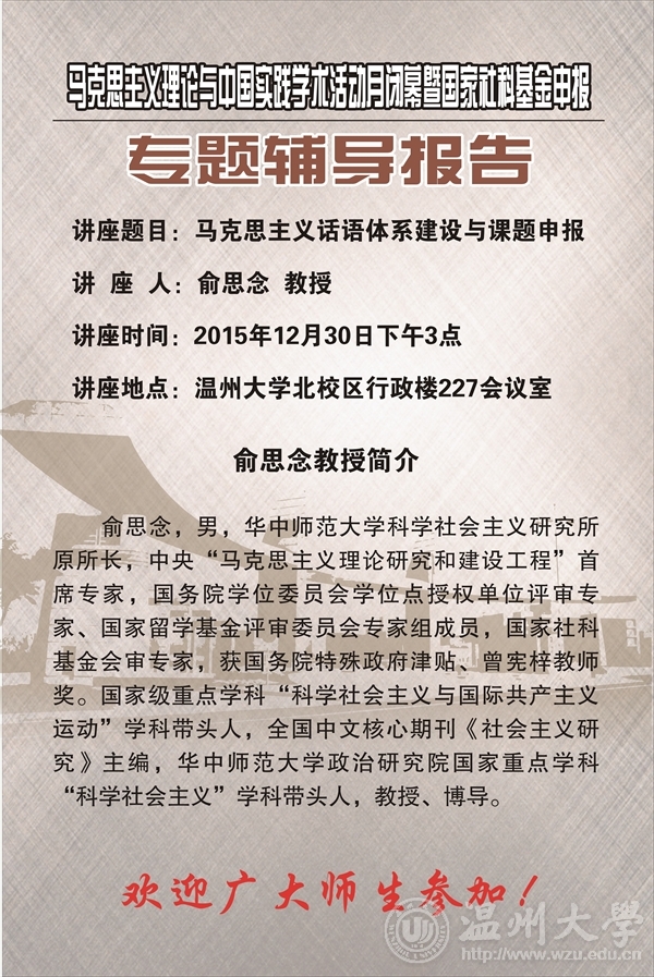 马克思主义理论与中国道路学术活动月闭幕式暨国家社科基金申报专题辅导报告