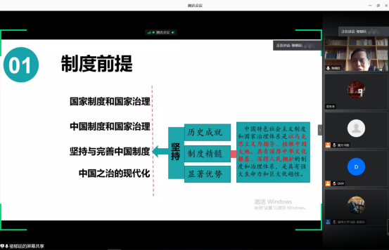 讲座中,骆教授以新冠疫情为背景,以国家治理和制度之治为主题,带领与会师生深入学习领会、贯彻落实十九届四中全会精神,进一步深入理解中国特色社会主义制度,推进国家治理体系和治理能力现代化。