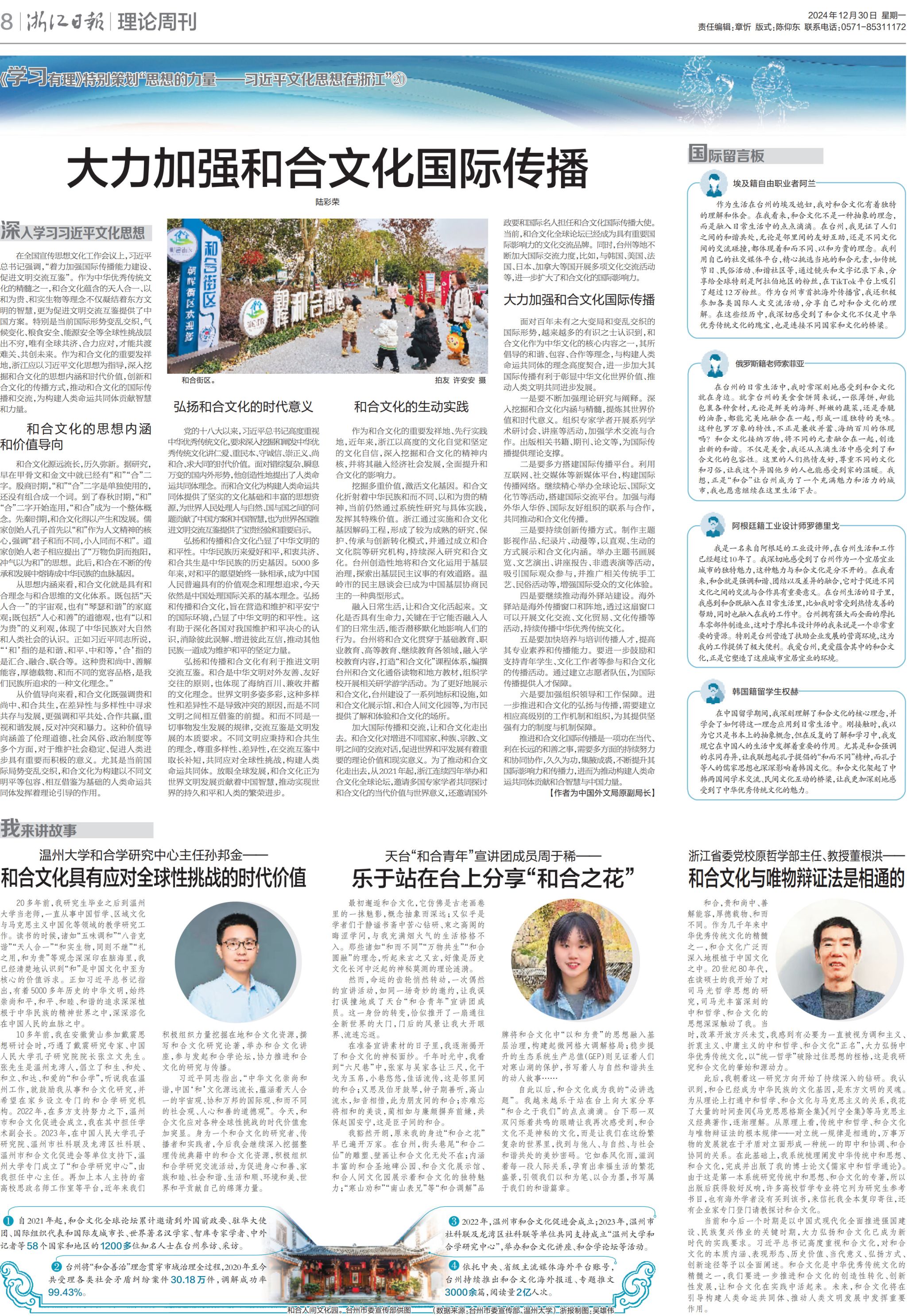 浙江日报:黑料不打烊 和合学研究中心主任孙邦金——和合文化具有应对全球性挑战的时代价值