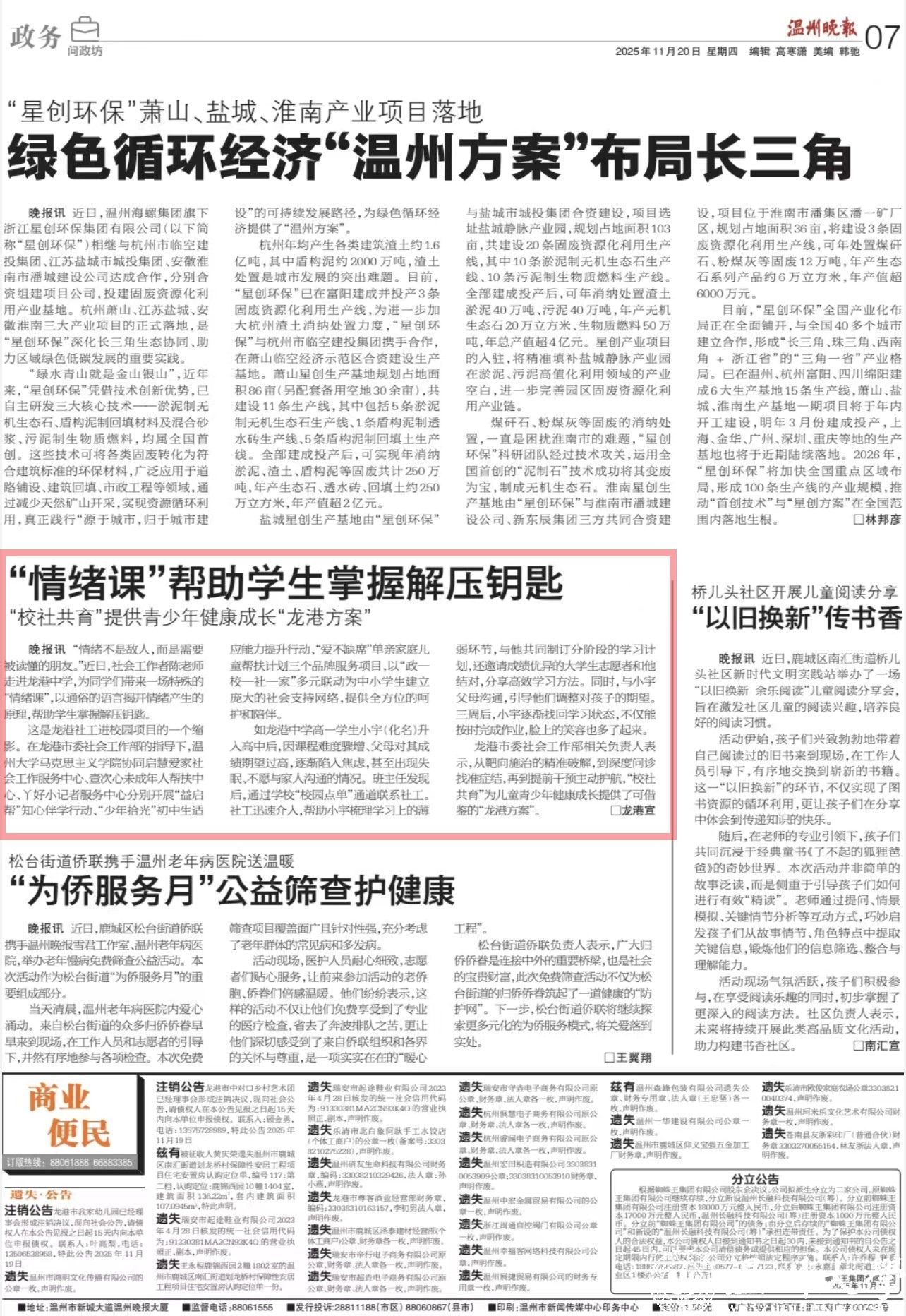 温州晚报:“情绪课” 帮助学生掌握解压钥匙