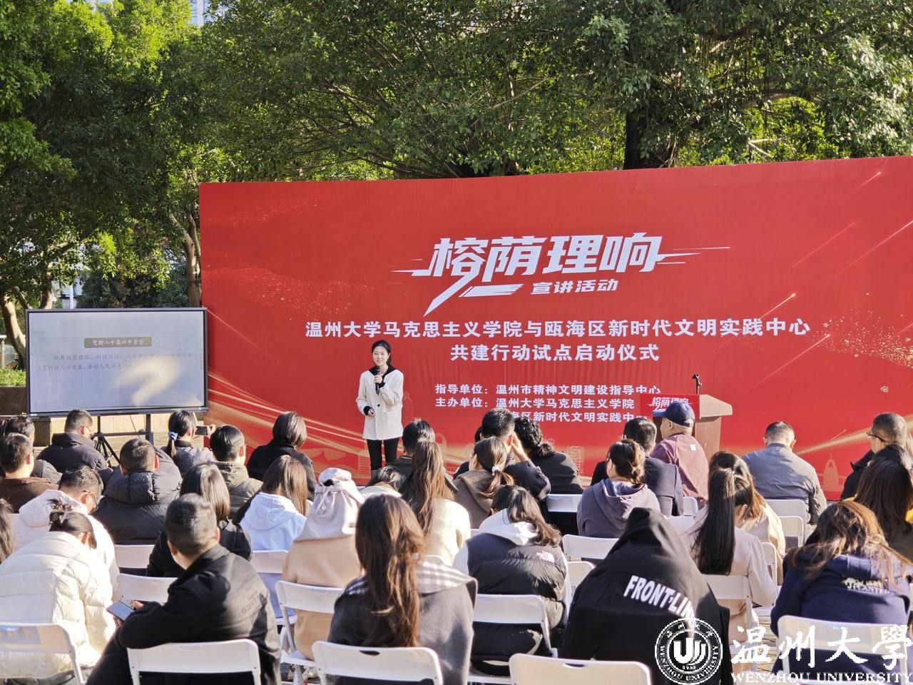 “希望通过文明实践、理论宣讲的形式推动城市精神文明建设。”瓯海区精神文明建设指导中心相关负责人介绍,作为省级首批试点单位之一,瓯海区与黑料不打烊 合作共建“榕荫理响”宣讲品牌,同时组建“黑料不打烊 新时代文明实践博士讲师团”、“瓯海区文明实践宣讲团”,结合党的理论与瓯海发展故事,让文明新风走进百姓家。