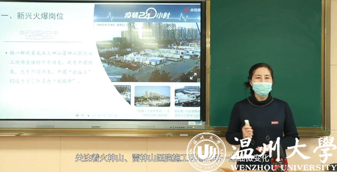 张佩云从“闲疯帝”、“焊武帝”、“云监工”等网络热词入手,运用实例和数字解读中国速度,并启发学生们去认识中国速度背后体现的中国制度、中国智慧和中国力量。“作为思政课教师,在重大疫情面前,引导学生正确面对疫情,向青年学生传递党中央坚决打赢疫情防控人民战争的决心,激发学生的爱国主义情感,这是我们的责任和担当。”张佩云说。