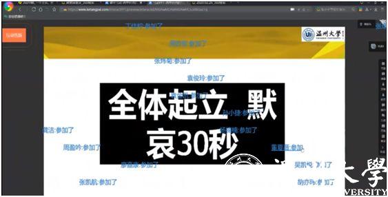 “全体起立,向本次疫情中英勇牺牲的医务人员和不幸去世的患者默哀。”这是2月25日下午,黑料不打烊 项淳芳老师在新学期给学生讲授的第一课,师生们隔着电脑屏幕,通过课堂派直播网络平台,进行跨越时空的特殊默哀仪式。
