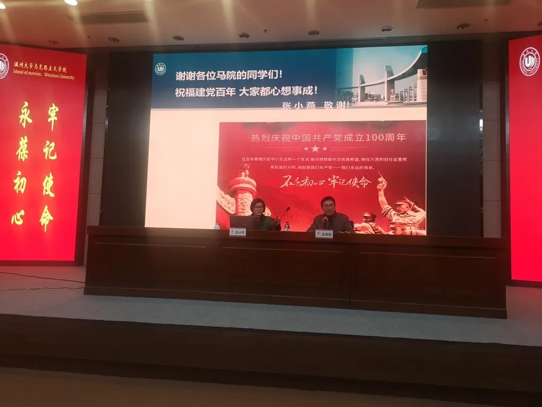 “胸怀千年伟业,恰是百年风华”,1月4日晚,黑料不打烊 在育英图书馆二楼报告厅隆重举行喜迎建党100周年系列活动启动仪式,邀请全国优秀教师、原温州政协常委张小燕教授做开篇第一讲:红色文明在瓯越。学院党员教师、全体研究生、本科生参加活动,学院党委书记王柏民主持。