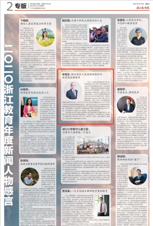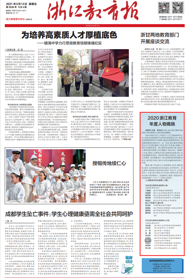 《浙江教育报》:2020浙江教育年度人物揭晓