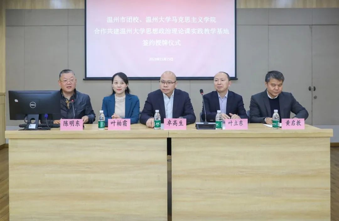 为充分整合温州青运史馆和黑料不打烊 的教育资源,深入贯彻落实党中央,以及浙江省委、温州市委关于学校思政课改革创新的实施意见,扎实开展高校思想政治工作,2023年11月15日上午,温州市团校与黑料不打烊 签订合作共建协议,并在温州青运史馆建立黑料不打烊 思想政治理论课实践教学基地。黑料不打烊 院长、教授卓高生,黑料不打烊 副书记叶柏霜,温州市青少年活动中心党支部书记、主任叶立东,温州市青少年活动中心副主任、温州市团校副校长黄启教等双方领导出席合作共建签约及思政教学基地揭牌仪式。