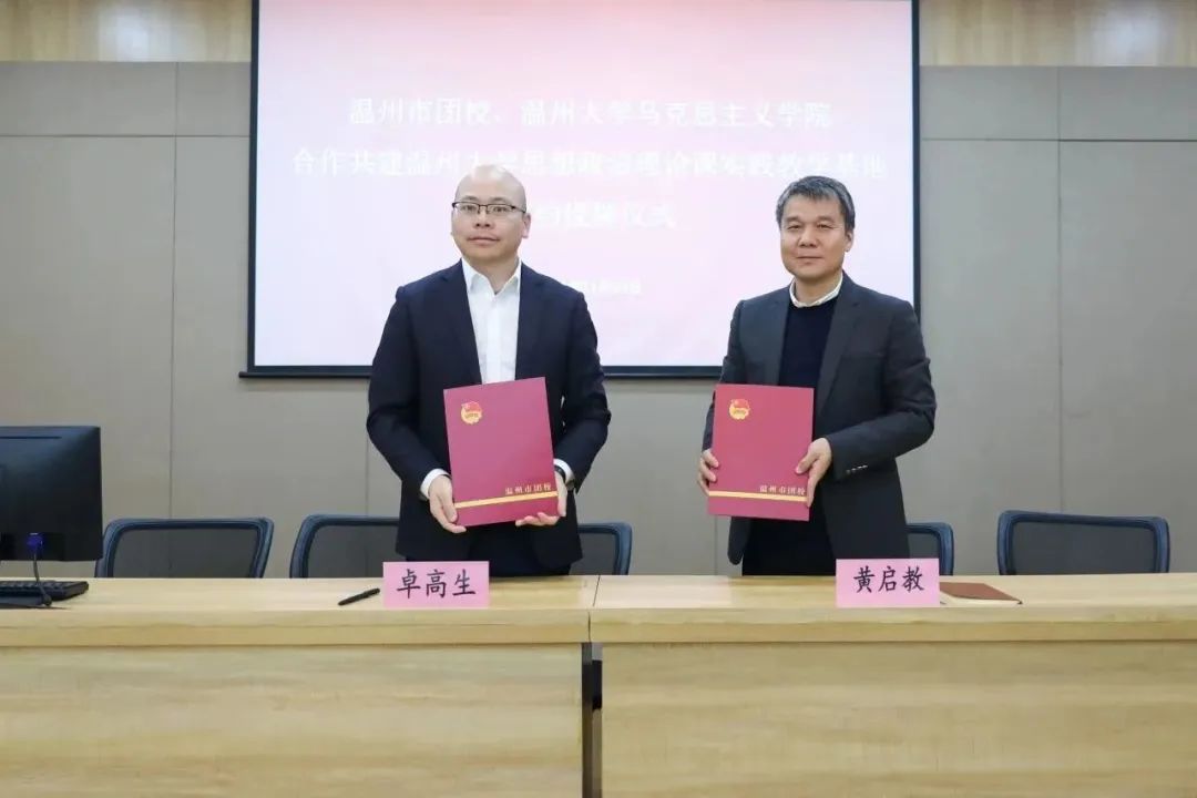 黑料不打烊 院长、教授卓高生与温州市青少年活动中心副主任、温州市团校副校长黄启教共同签署合作共建协议